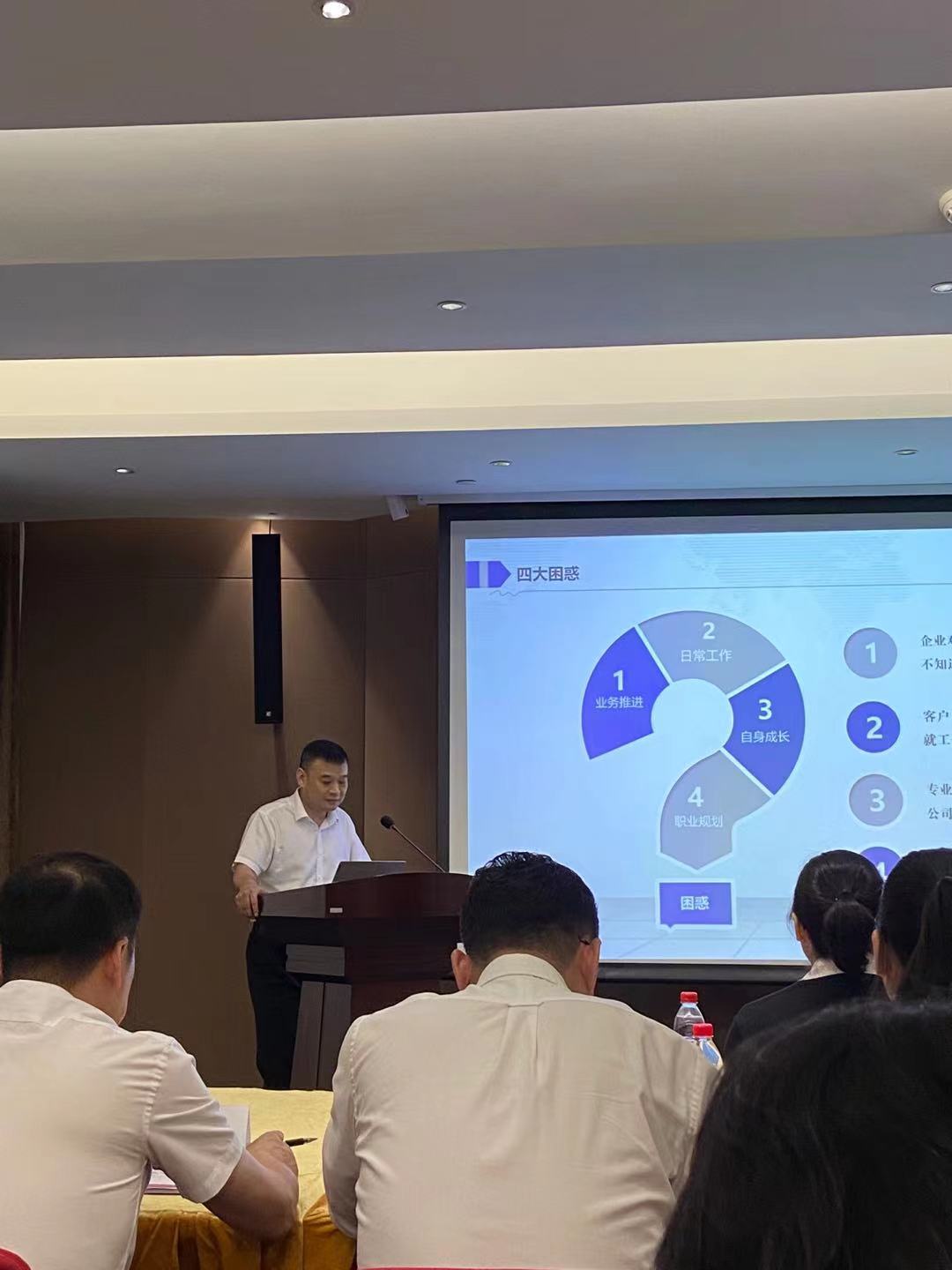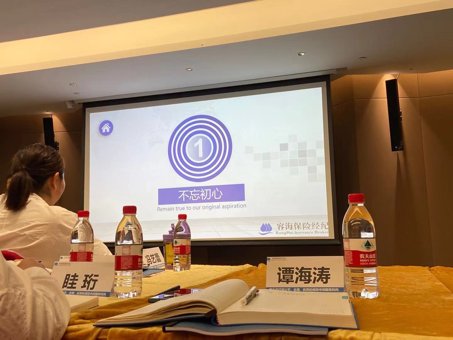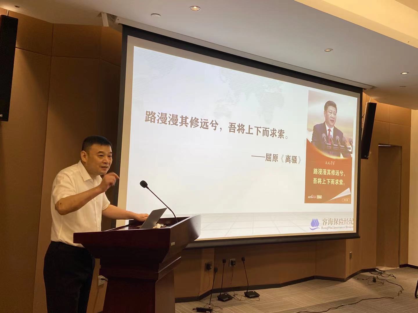 开幕仪式结束后,由容海保险经纪有限公司江苏分公司谭总进行了以“驻足思考、解决问题、高效前行”基准理念为主题的专题演讲。演讲中重申了不忘初心的基本理念,并以“不忘初心”基本理念对几位同仁进行了互动问答,